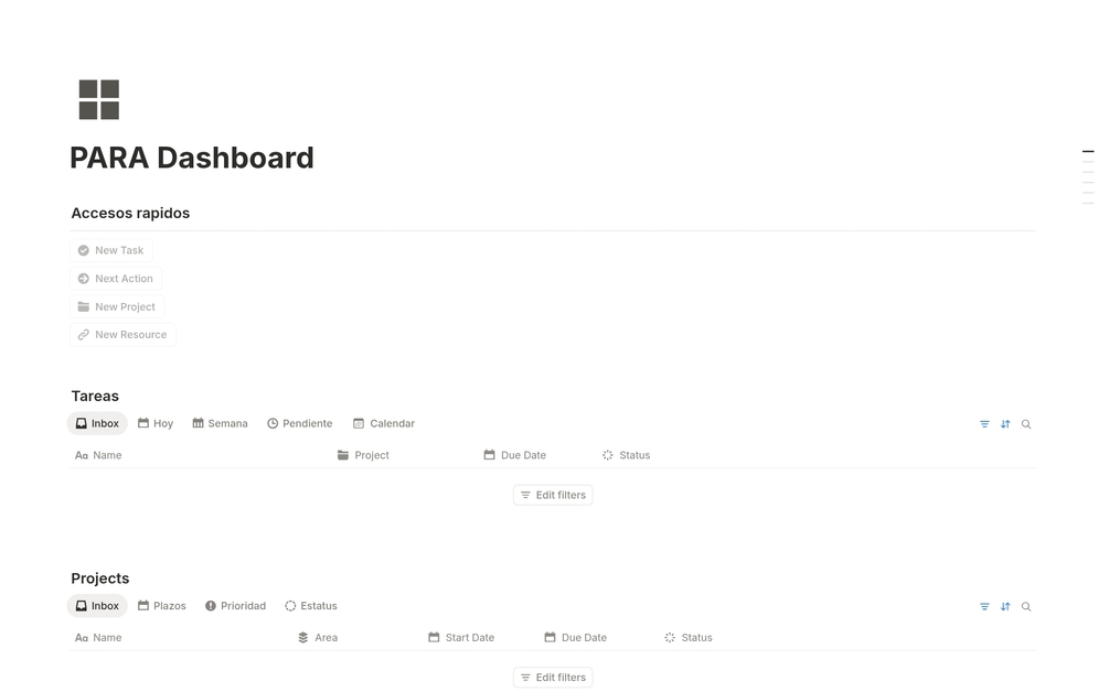 PARA Dashboard en Notion